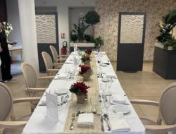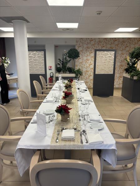 Les résidents ont partagé un repas de fête préparé par notre équipe de cuisiniers, accompagné de champagne, dans une salle joliment décorée aux couleurs de la fête !
