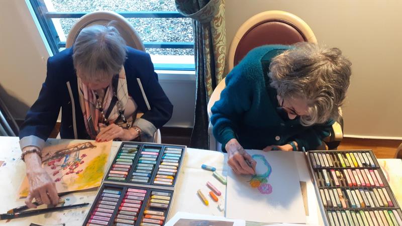 Le matériel mis à disposition, pastels secs, peinture acrylique, crayons de couleur et mines graphite, permet de redécouvrir ou de s’initier à une pratique artistique adaptée aux seniors. Cette activité contribue au bien-être des personnes âgées, stimule les capacités cognitives et motrices, et encourage l’expression émotionnelle !