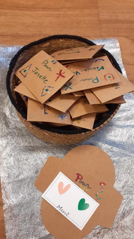 À l’occasion de la Journée nationale des aides-soignantes, le 26 novembre, plusieurs résidents ont laissé parler leur créativité en réalisant de petites cartes personnalisées pour chacune d’elles. Ces attentions étaient accompagnées de chocolats, offerts à l’initiative du président du Conseil de la Vie Sociale !