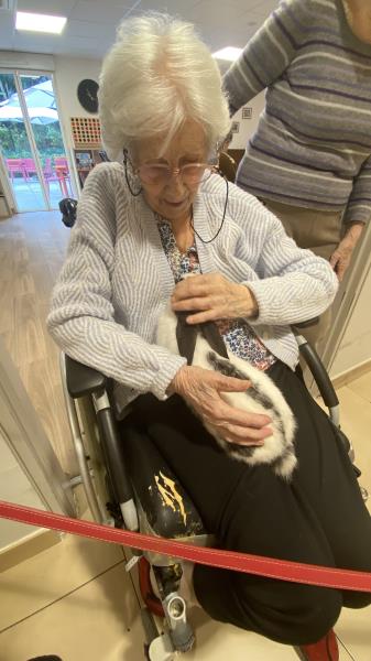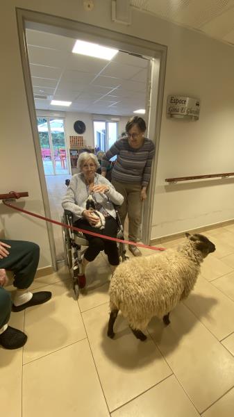 Régulièrement, nous avons la chance d’accueillir les animaux d’une ferme, pour le plus grand bonheur de nos résidents. Mouton, lapins, poules… chaque venue apporte une vraie bouffée de joie et de douceur.