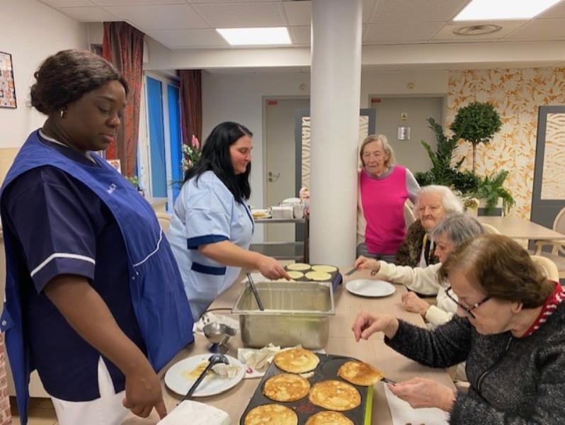 Comme chaque dimanche, les résidents de la résidence Simon Vouet, située au Port-Marly, ont mis la main à la pâte pour préparer de délicieuses crêpes qui ont embaumé toute la résidence. Ce rendez-vous dominical est devenu un véritable moment de convivialité où chacun participe selon ses envies : mélanger la pâte, surveiller la cuisson, choisir les garnitures ou simplement partager un moment agréable autour d’une bonne odeur de crêpes chaudes.